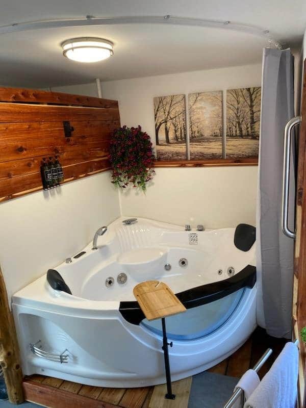 Two-person jacuzzi tub for relaxing after a long day outdoors